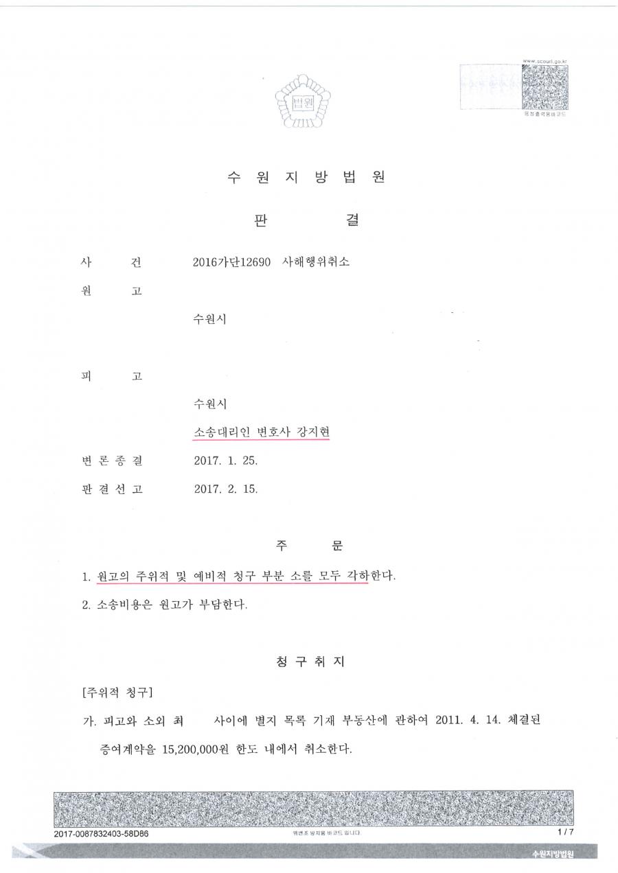 사건 : 수원지방법원 2016가단12690 사해행위취소